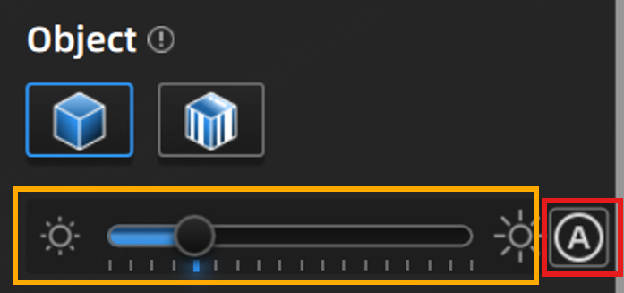 When the surface is more reflective, please use the reflective mode settings (surrounded Blue). If the capturing doesn't work so well, you can first let the software to adjust the brightness automatically by clicking on A (surrounded Red) or adjust it manually (surrounded orange). If the scanning is still not good, you can try another “Object” mode.