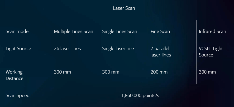 | Scan mode | Minimum Scanning Distance | Maximum Scanning Distance | Scanning Distance Range |