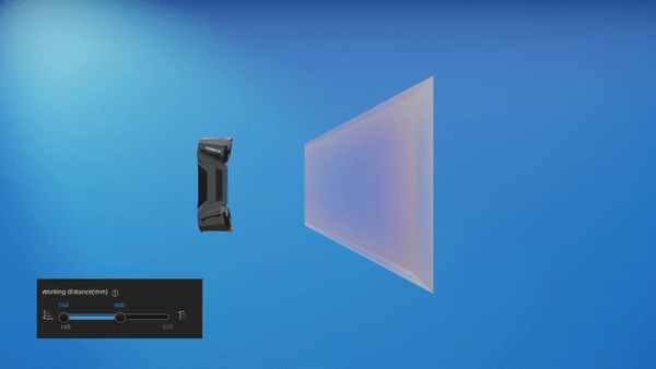 The Effective Scanning Volume can be easily adjusted by the user through the Working Distance slider.