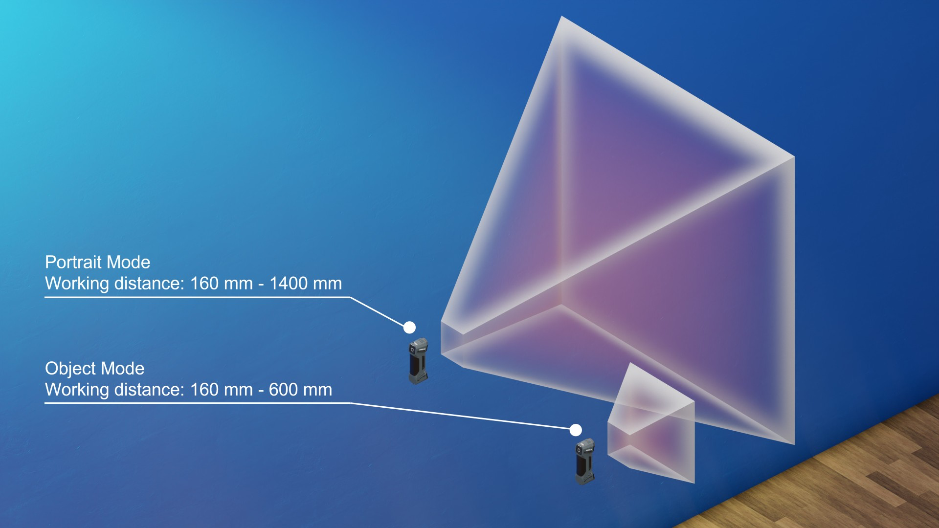 In IR Mode, the possibility of adjusting the Effective Scanning Volume allows the user to select the best settings to optimize the scanning process for different objects in the different scenarios.