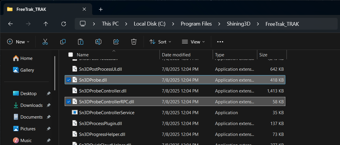 1. Locate Sn3DProbe.dll and Sn3DProbeControllerRPC.dll under C:\Program