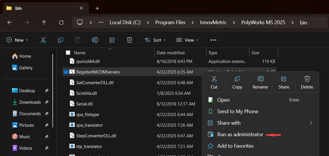 5. Enter the bin folder C:\Program Files\InnovMetric\PolyWorks MS 202x\bin, run