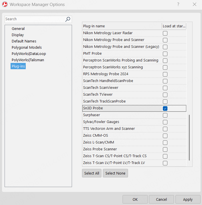7. Go to Plugins tab, and check the Sn3D Probe option