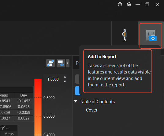 - Navigate to the inspection features you wish to display. For relevant features, you must explicitly click the Add to Report button.