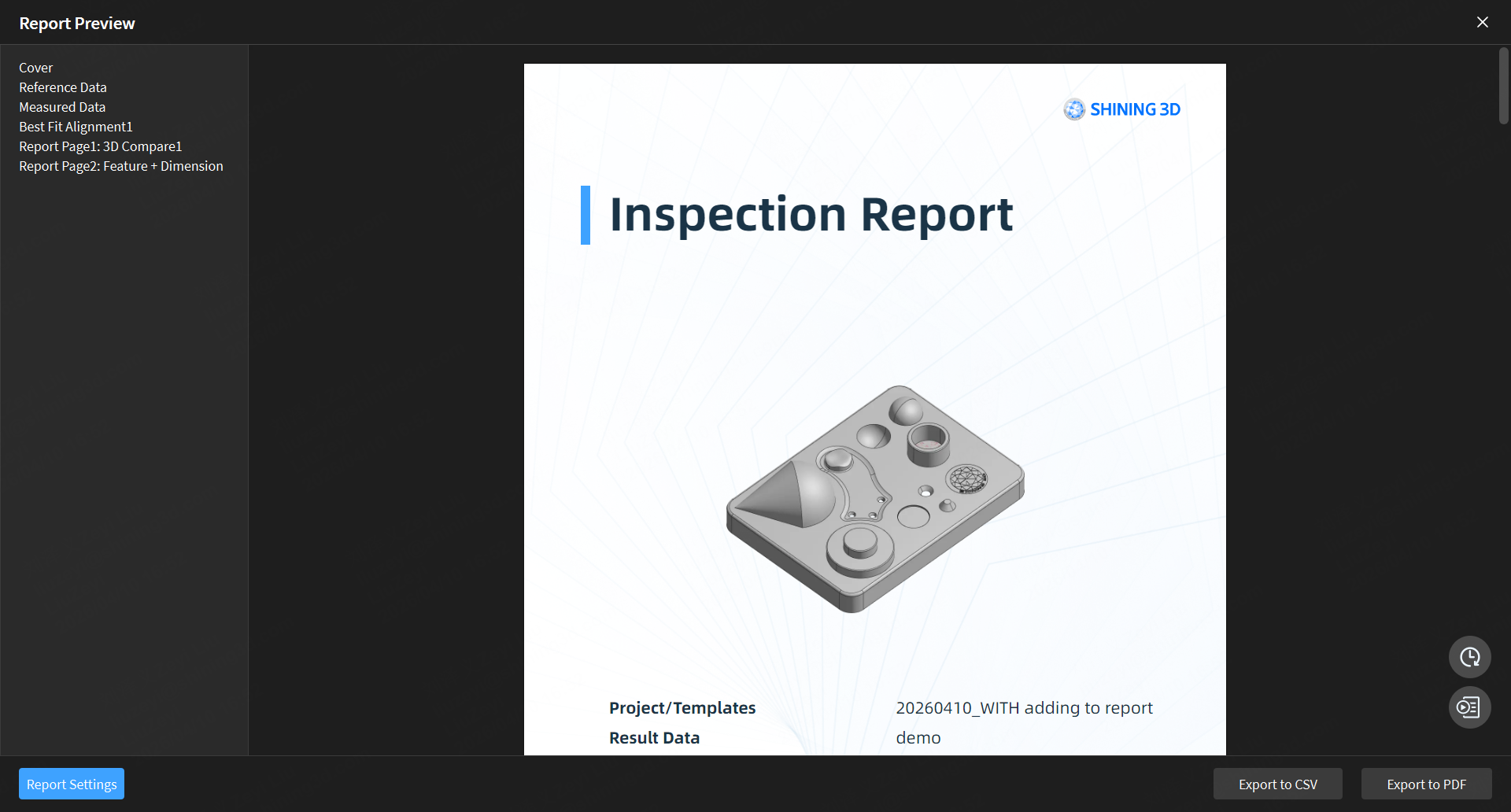 - Ensure that aside from the automatically generated Cover page, you have successfully added specific data pages (e.g., 3D Compare1, Feature + Dimension).